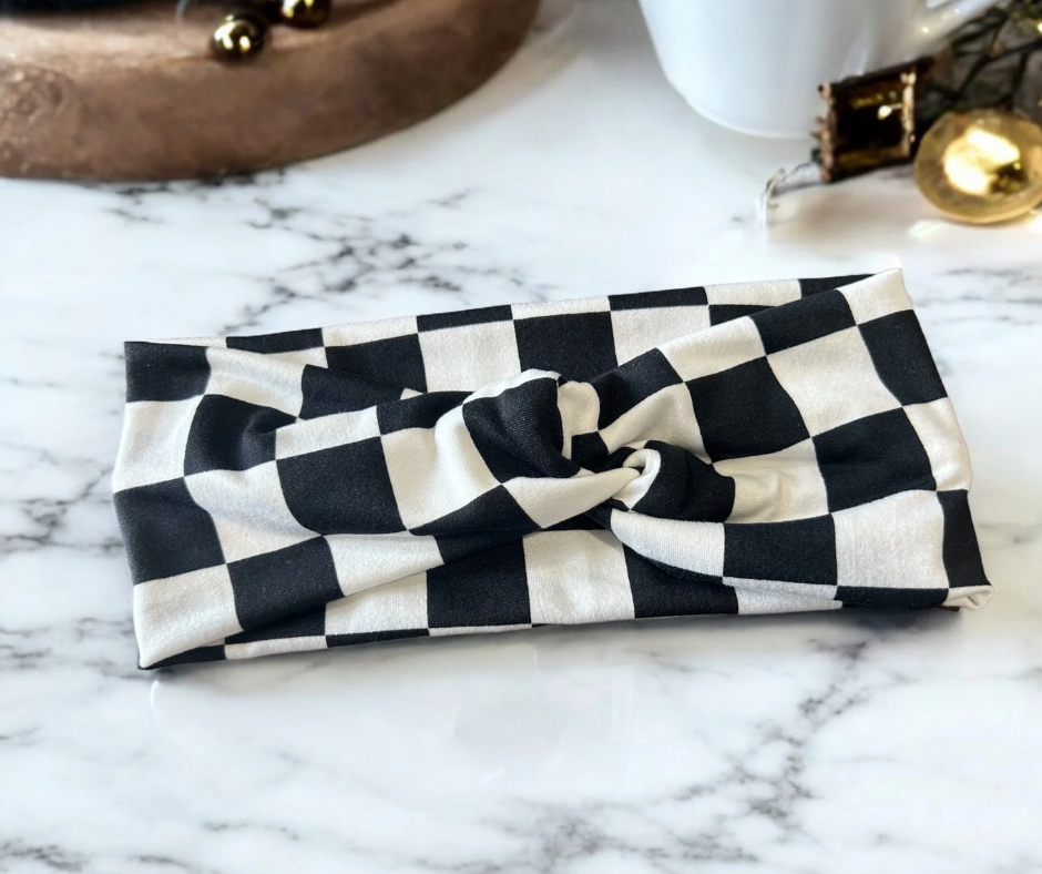 Black and White Checkered Extra Wide DBP Twisted Headband