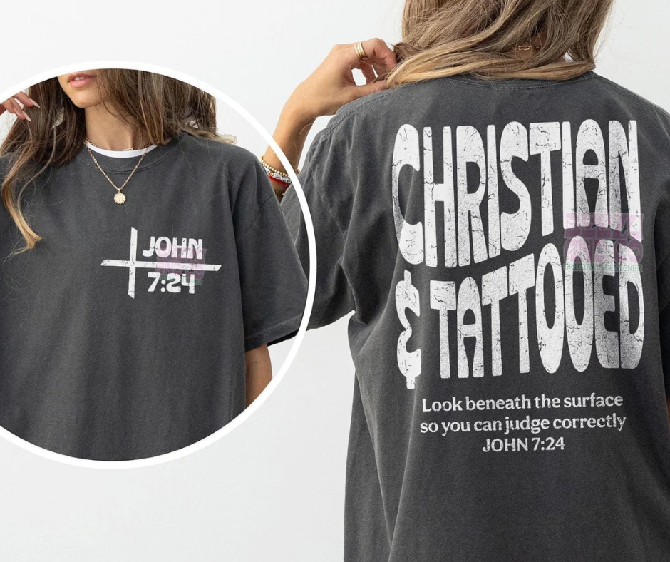 Get ready to make a bold statement with our Christian and Tattooed Short Sleeve Tee! Express your faith and edgy style with this unique shirt. Perfect for everyday wear, it's sure to turn heads and start conversations.