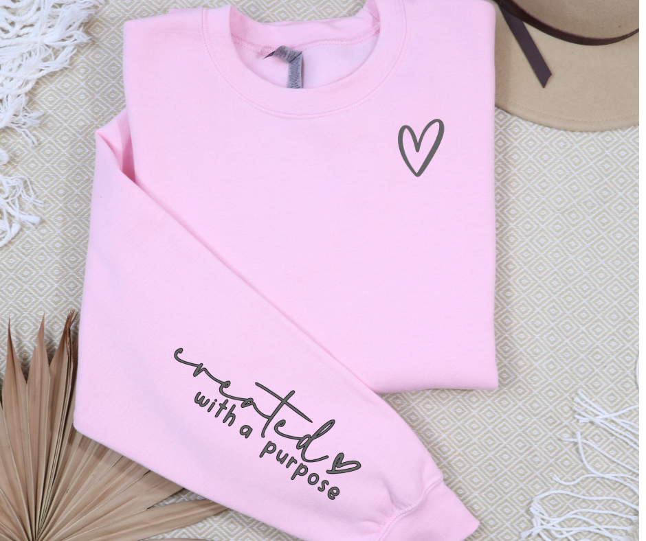 Find your purpose with our Created With a Purpose Crewneck Sweatshirt. Made with intention, this sweatshirt will help you feel motivated and fulfilled as you go about your day. Let this happy and uplifting piece be a reminder to always strive for your goals.