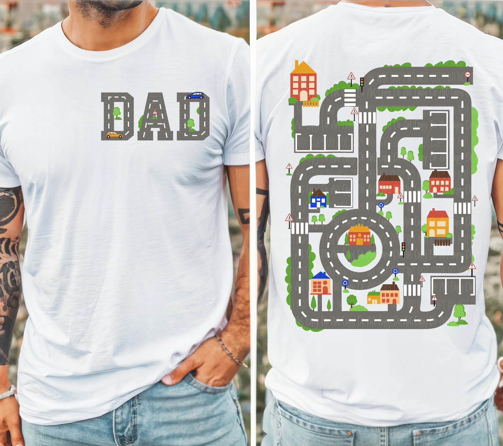 Get ready to race in style with our Dad Race Track Short Sleeve Tee! Made with a comfortable and breathable fabric, this tee features a vibrant print of a hot wheels race track that will bring out your inner child and make you the coolest dad on the block. Start your engines and show off your love for racing with this must-have tee.