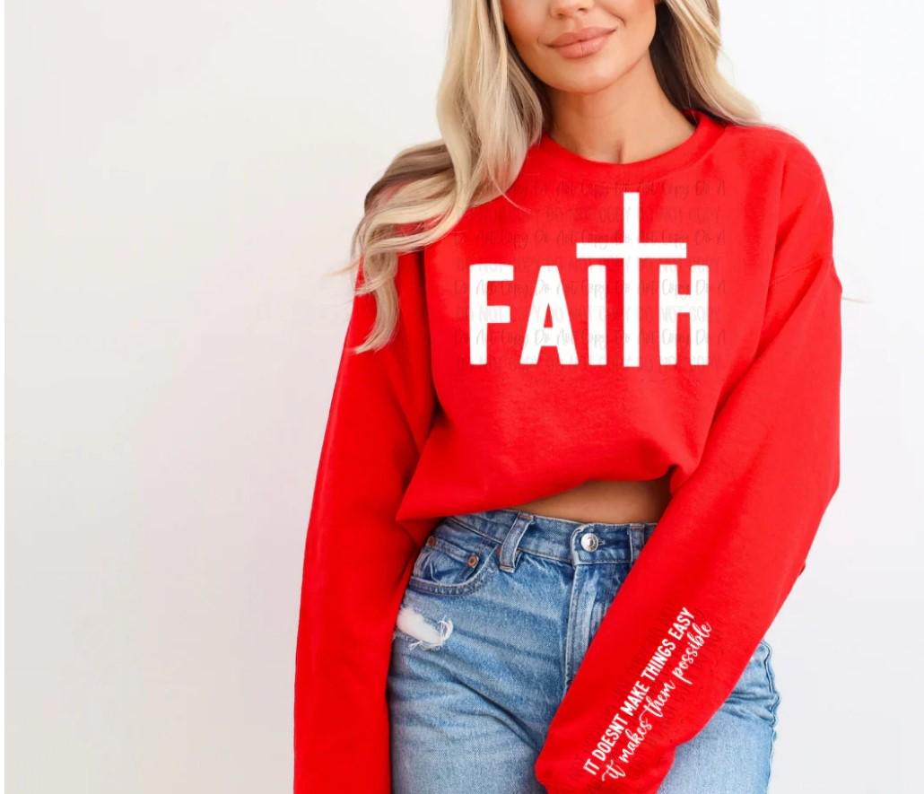 Let your faith shine with our Faith With Sleeve Crewneck Sweatshirt. This cozy sweatshirt embodies the power of faith, inspiring you to stay true to your beliefs. Perfect for everyday wear or for cozy nights at home, this sweatshirt is a reminder to never lose faith.