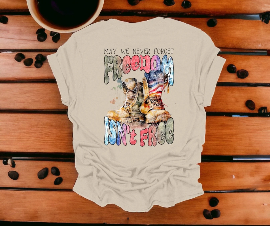 Celebrate the true value of freedom with our premium short sleeve tee. Made with soft, high-quality material, this tee proudly proclaims that freedom isn't free. Show your patriotism and support for those who defend it with every wear.
