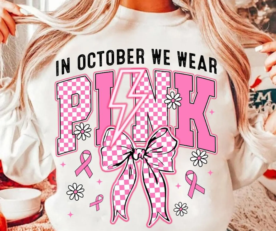 Show your support for breast cancer awareness with the In October We Wear Pink Crewneck Sweatshirt. This cozy, stylish sweatshirt is perfect for October and beyond, helping you raise awareness while staying comfortable. Wear it proudly to honor survivors, support fighters, and promote early detection. Join the movement and make a meaningful statement with every wear.