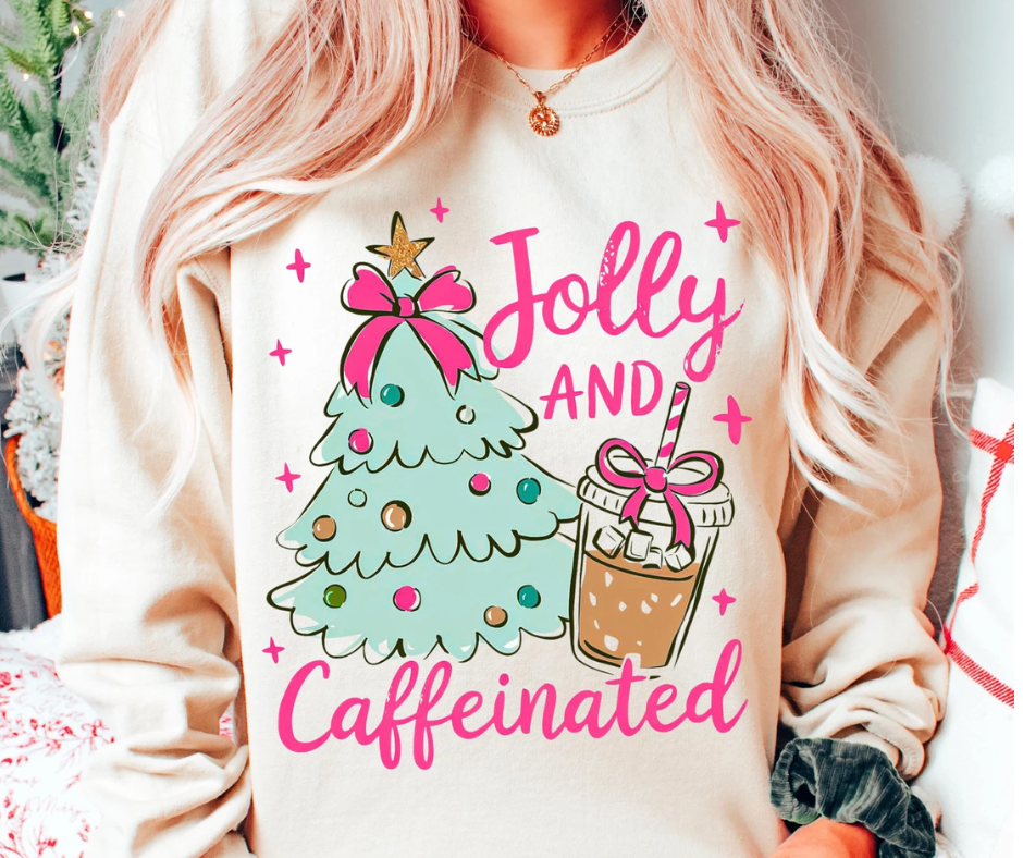 Stay cozy and energized this holiday season with the Jolly and Caffeinated Crewneck Sweatshirt. Featuring a playful iced coffee design accented with a festive bow, this sweatshirt perfectly blends your love for holiday cheer and your favorite caffeinated treat. Ideal for keeping warm while showing off your spirited style, it’s a must-have for anyone who’s merry and fueled by coffee.