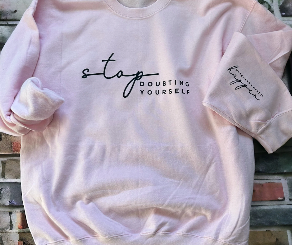 Empower yourself with our Stop Doubting Yourself Crewneck Sweatshirt. Let go of self-doubt and embrace your true potential. Boldly declare your confidence and inspire others to do the same. Perfect for anyone looking to boost their self-esteem and reach their goals!