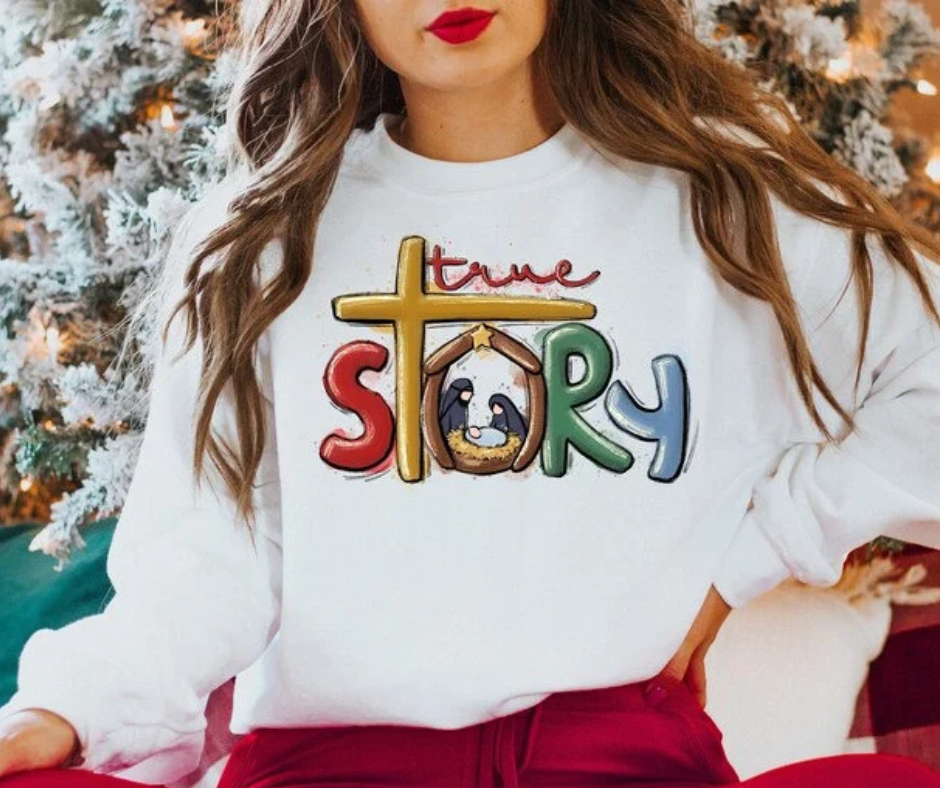 Get ready to share your true story with the world! Our True Story Crewneck Sweatshirt features the powerful message of Jesus, inspiring you to spread the love and truth wherever you go. Made with premium materials, this sweatshirt will keep you comfy and stylish while spreading a message of faith and positivity.